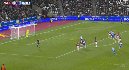 比赛第32分钟,扬库巴-明特造点,维尔贝克操刀命中帮助布莱顿1-1扳平比分。