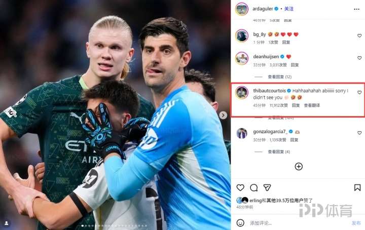 这条社媒引来居莱尔众多皇马队友的评论留言,而该名场面的主角之一库尔图瓦也现身评论区,评论道:“哈哈哈哈哈哈哈哈,抱歉我真没看见你”。